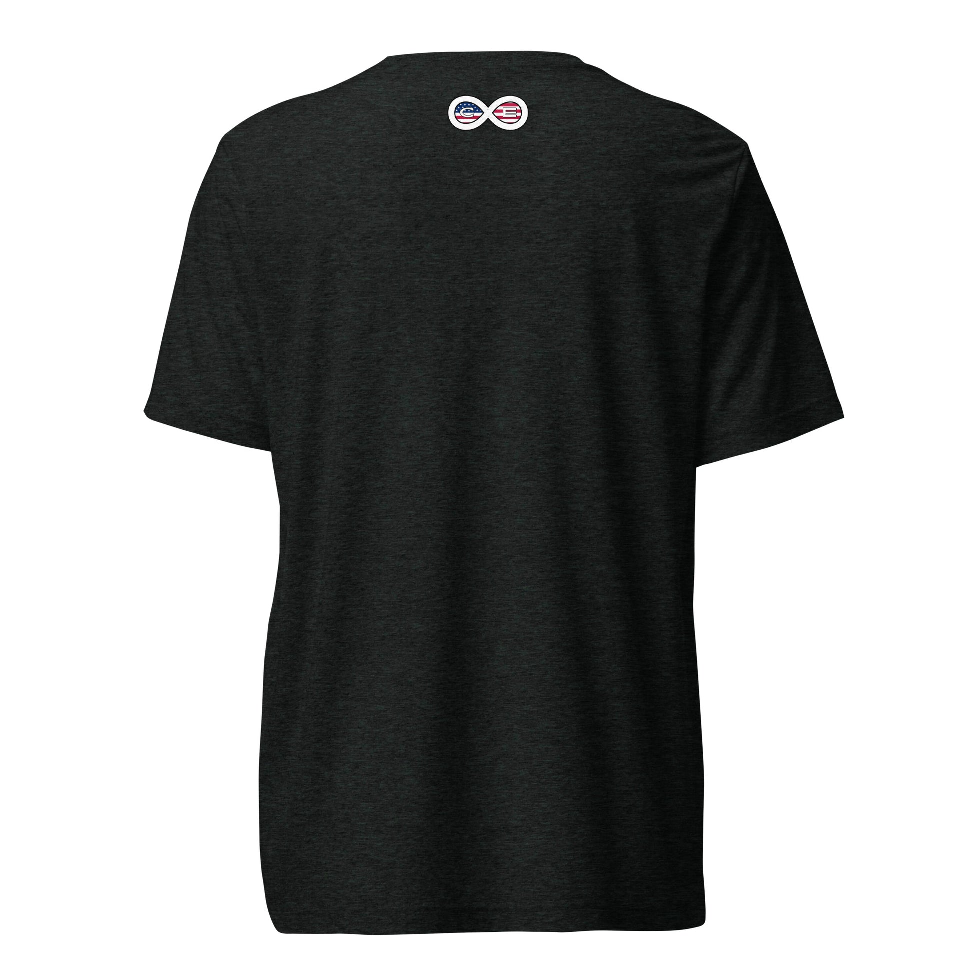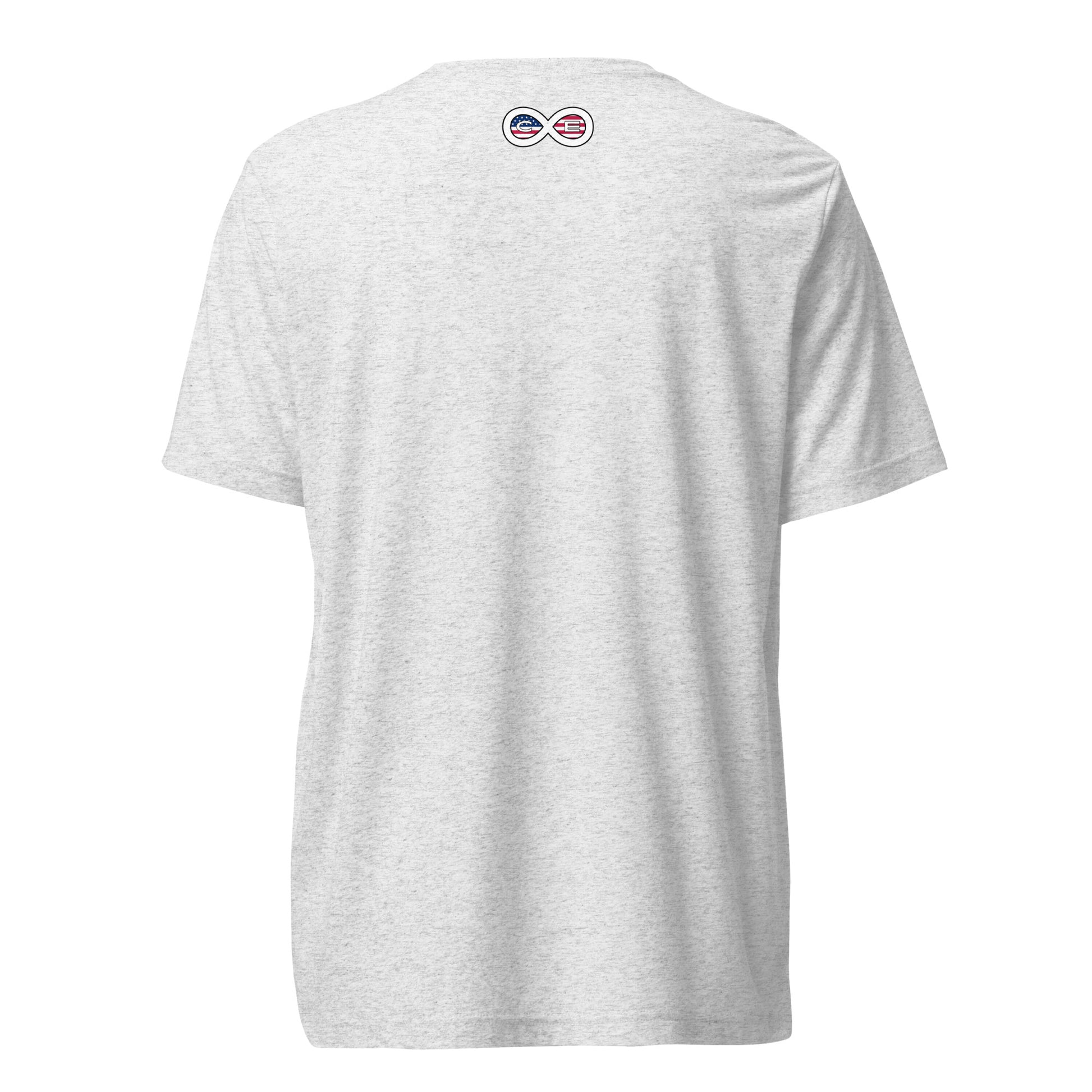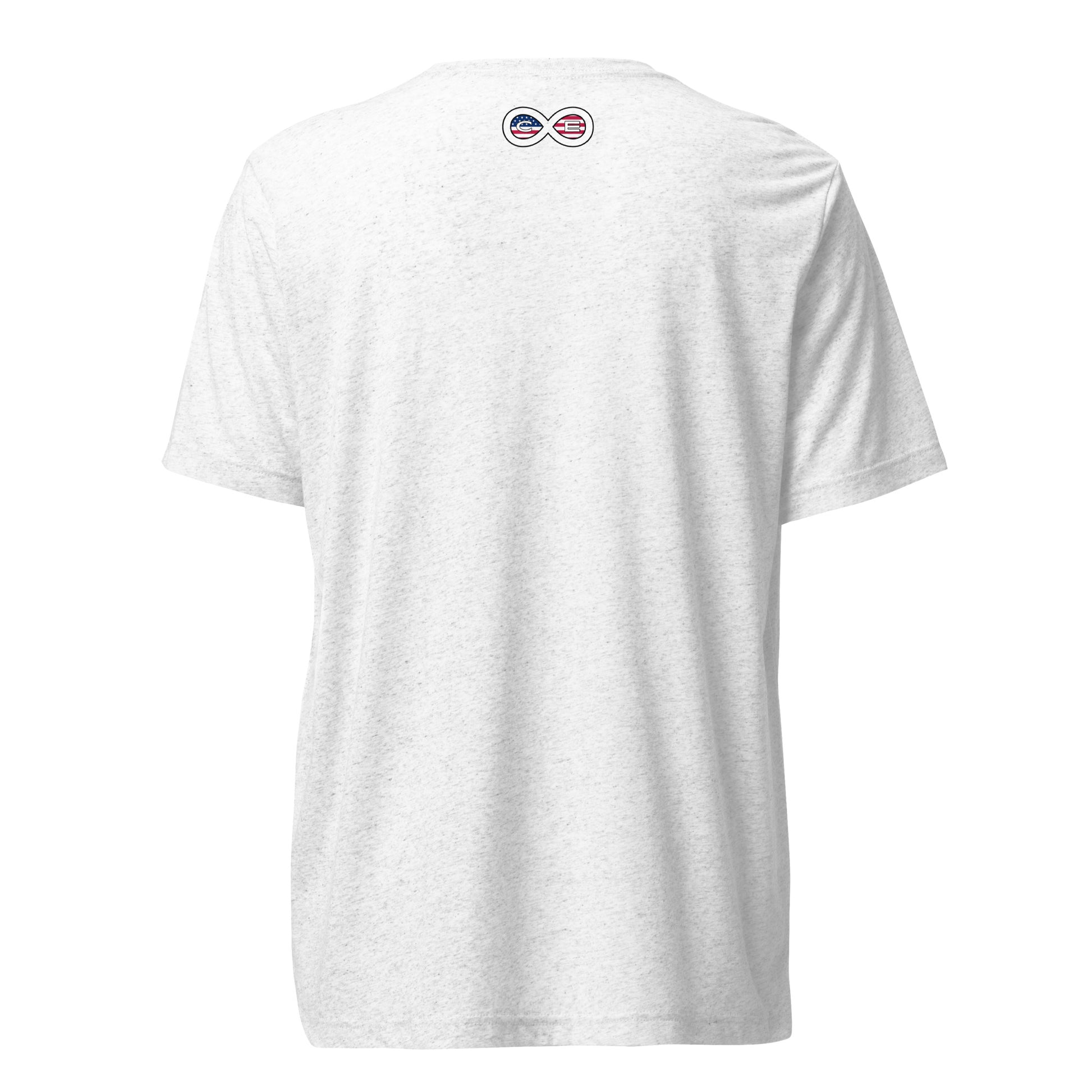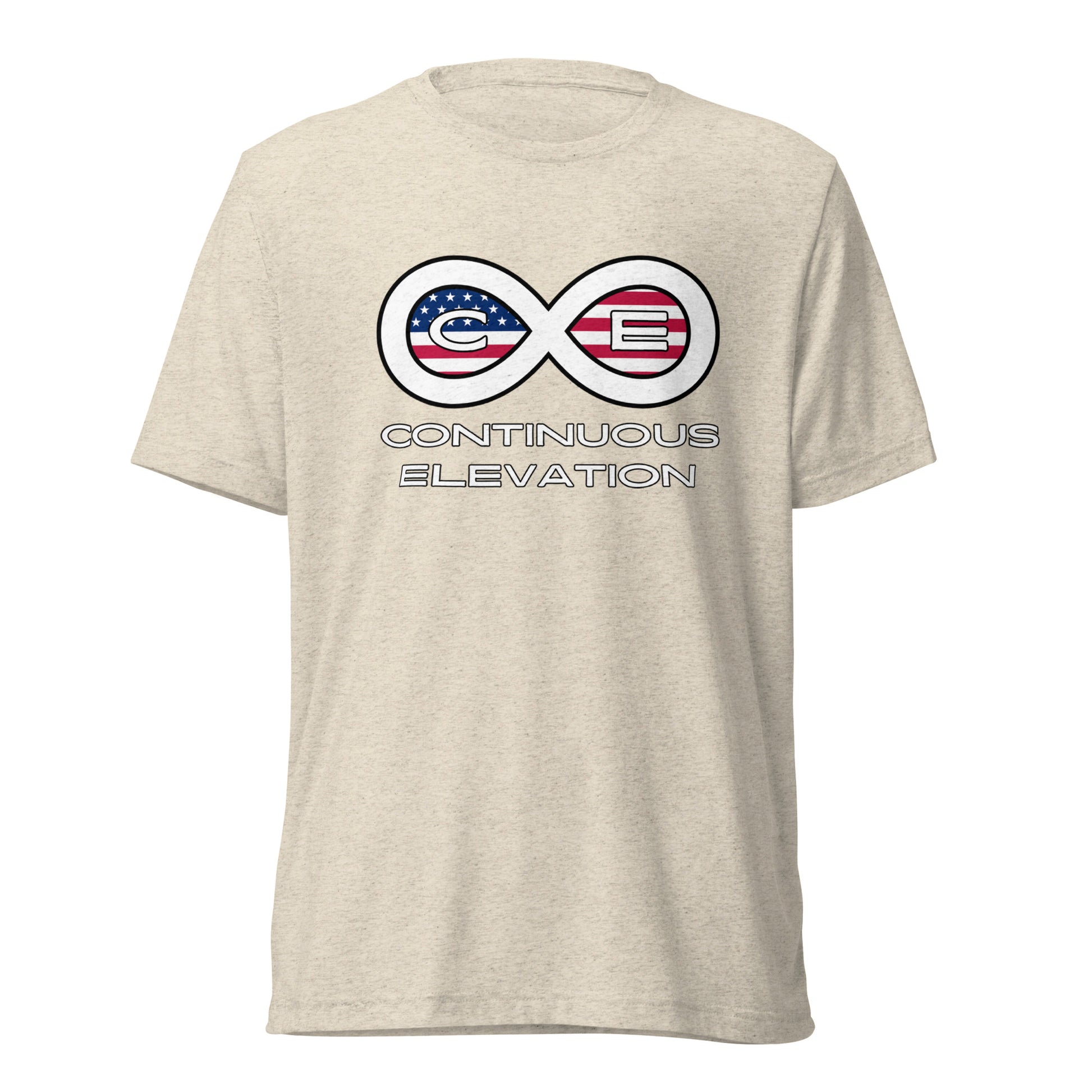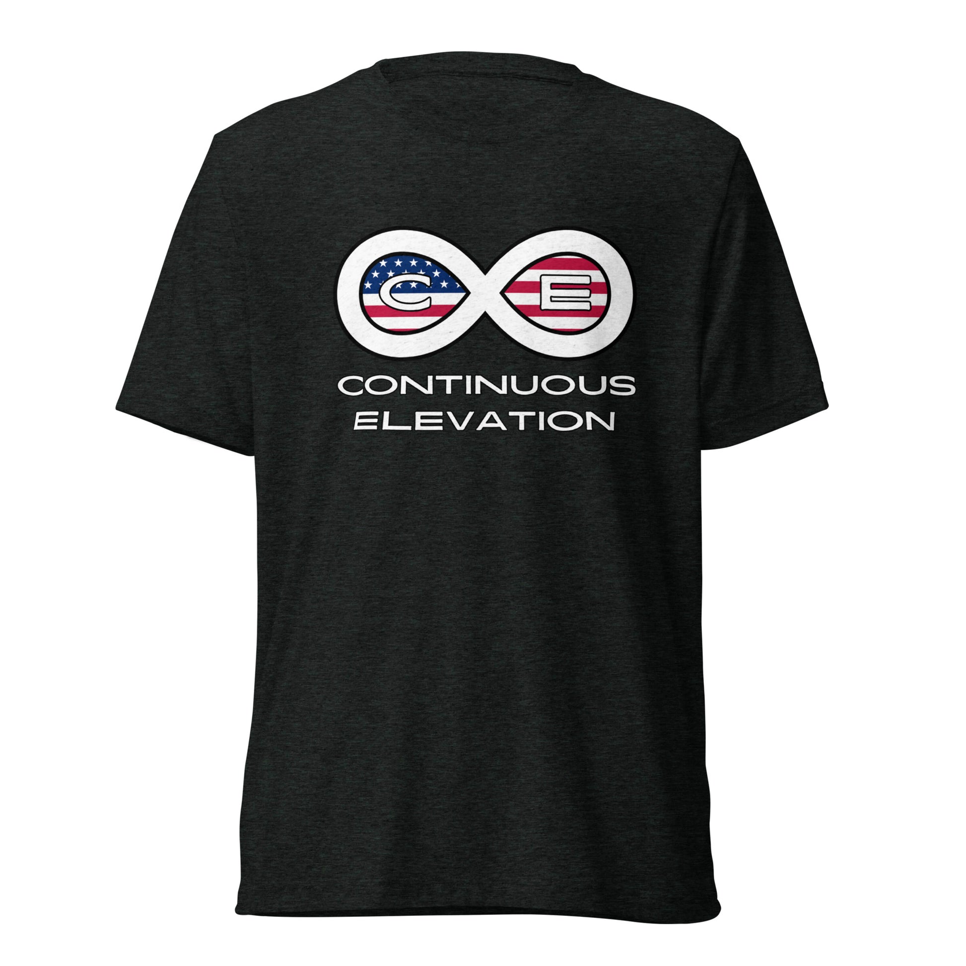 Wear your pride in the USA. This tri-blend tee features the signature Continuous Elevation logo with the United States flag backdrop on the front and back.
