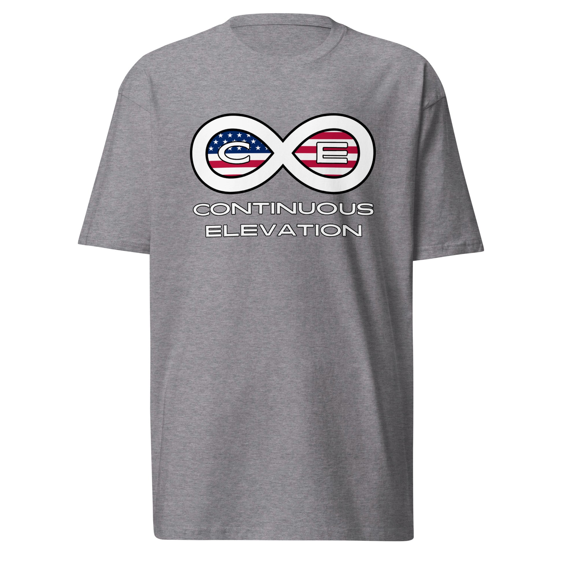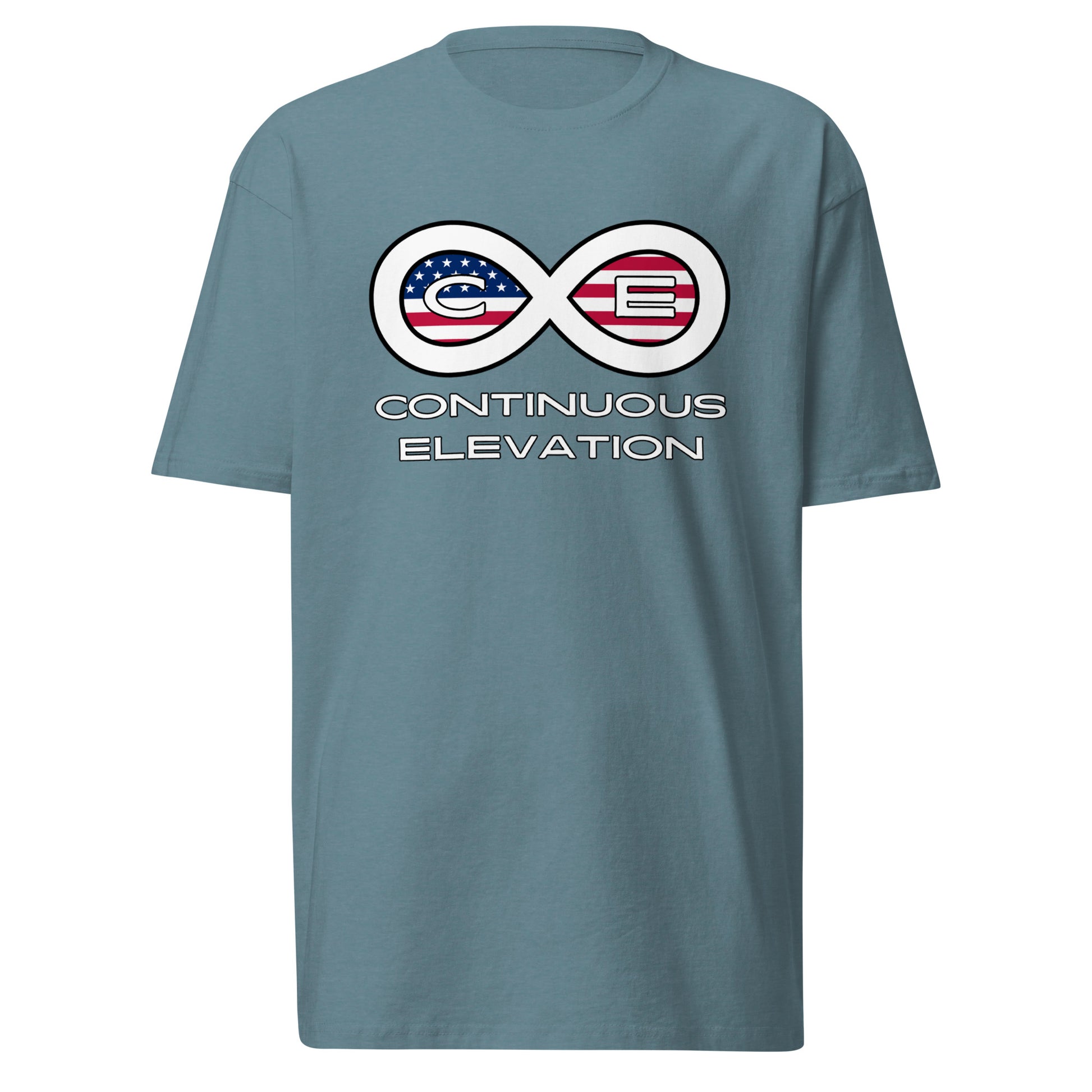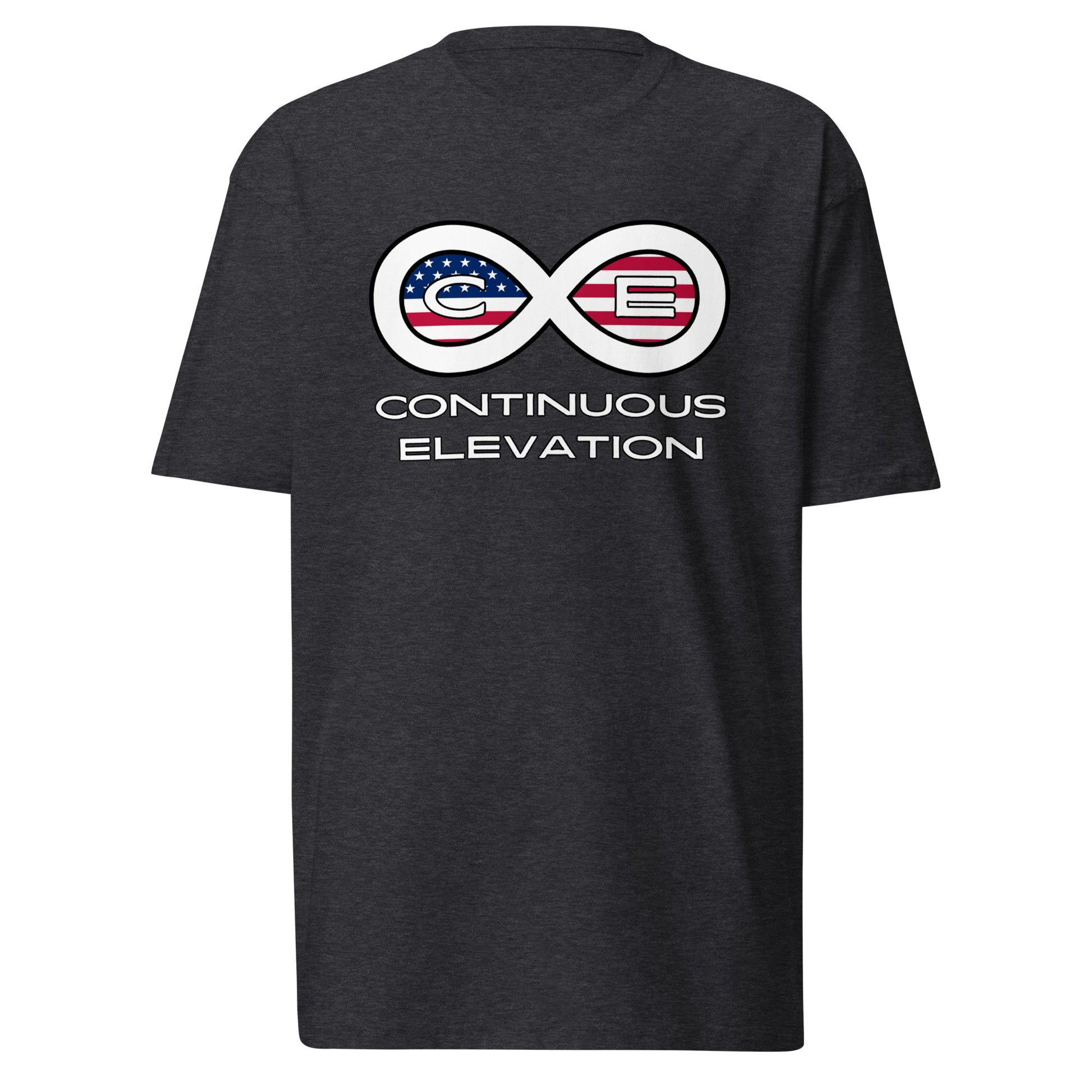 Wear your pride in the USA. This heavyweight men's tee features the signature Continuous Elevation logo with the United States flag backdrop on the front and back.