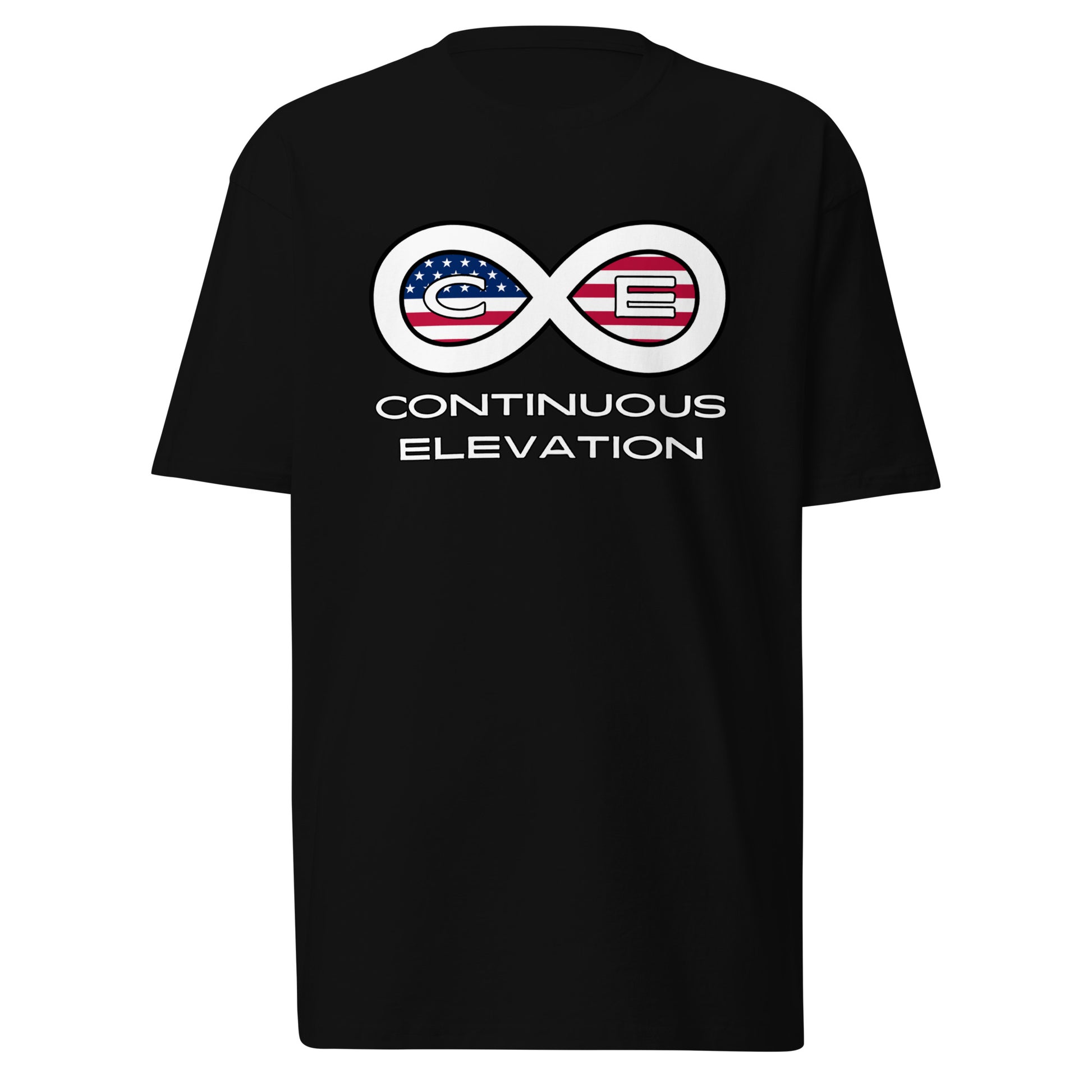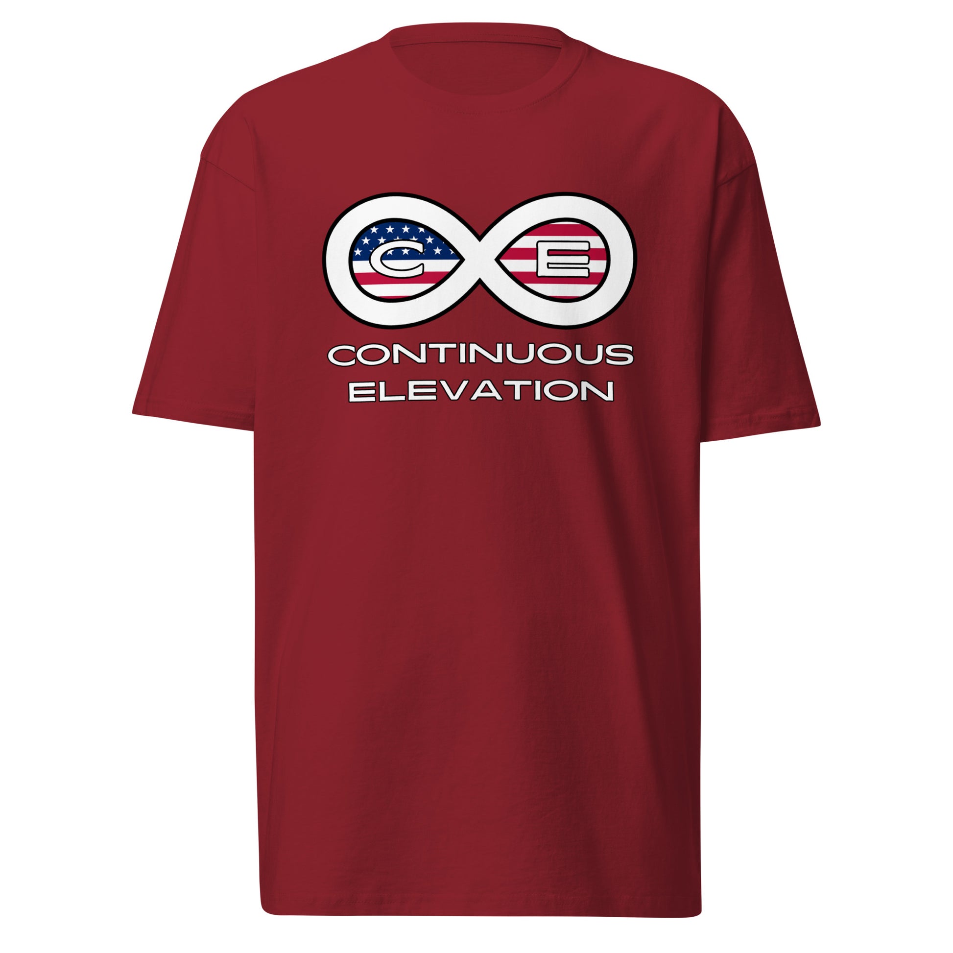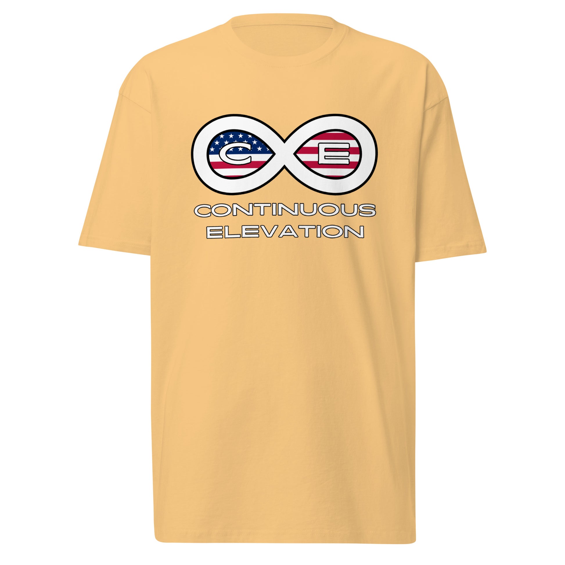 Wear your pride in the USA. This heavyweight men's tee features the signature Continuous Elevation logo with the United States flag backdrop on the front and back.