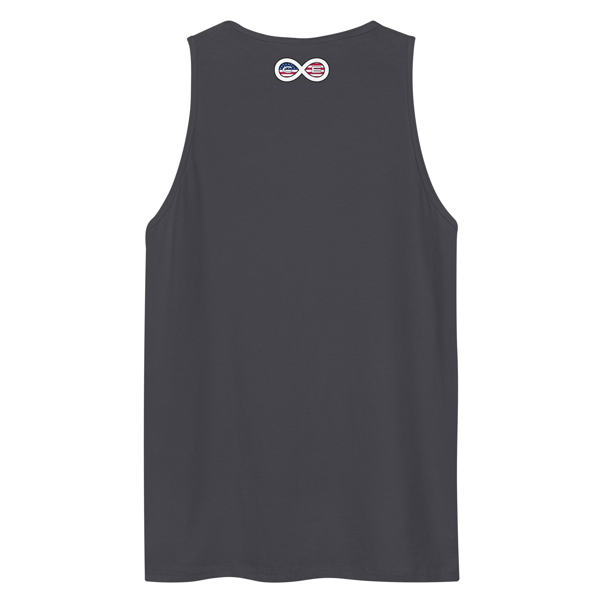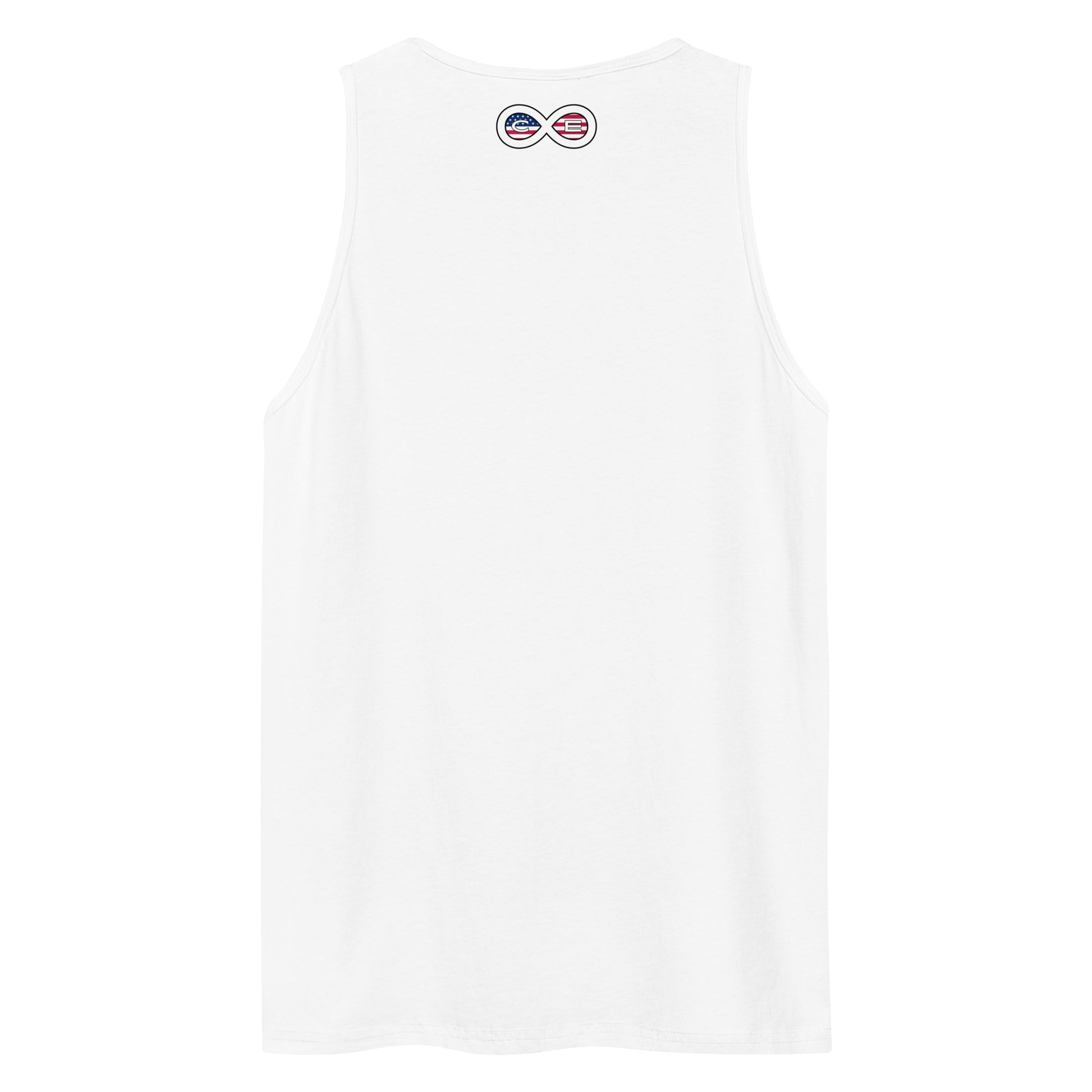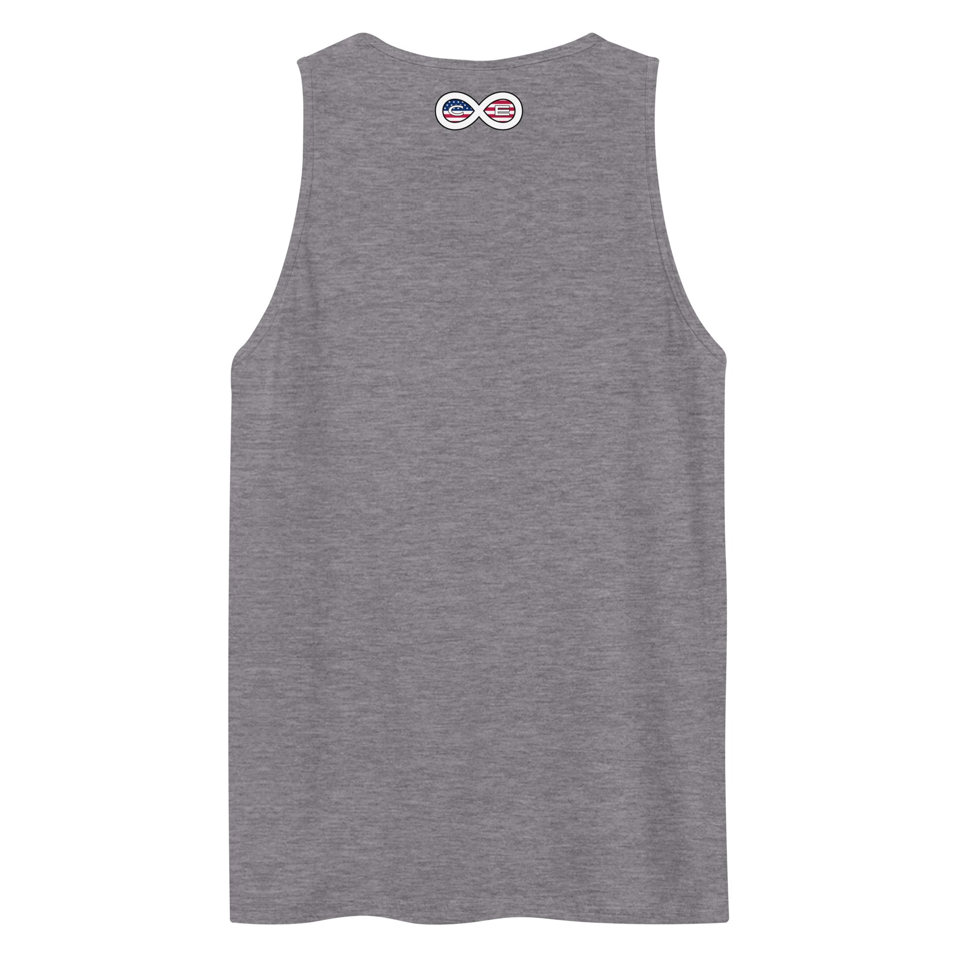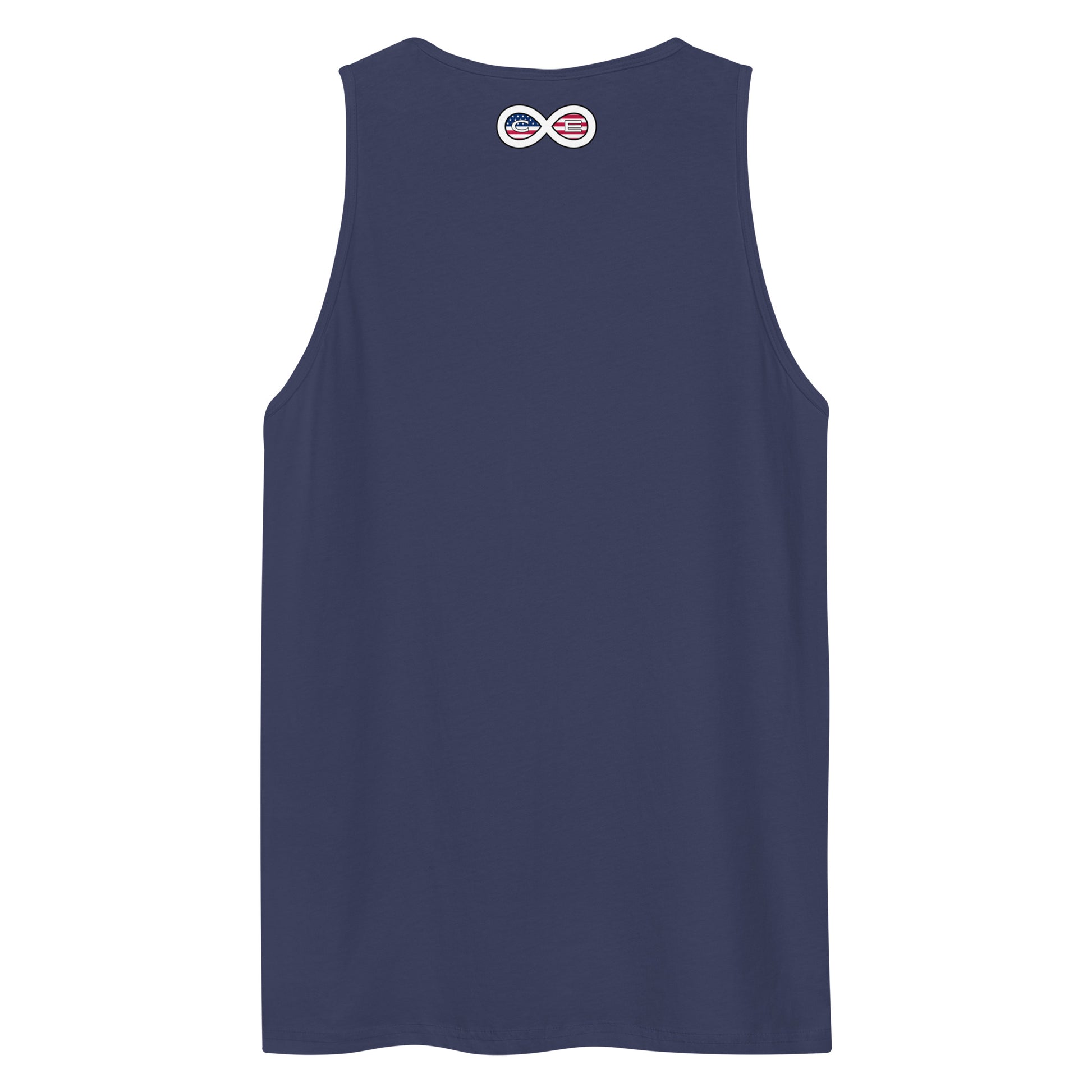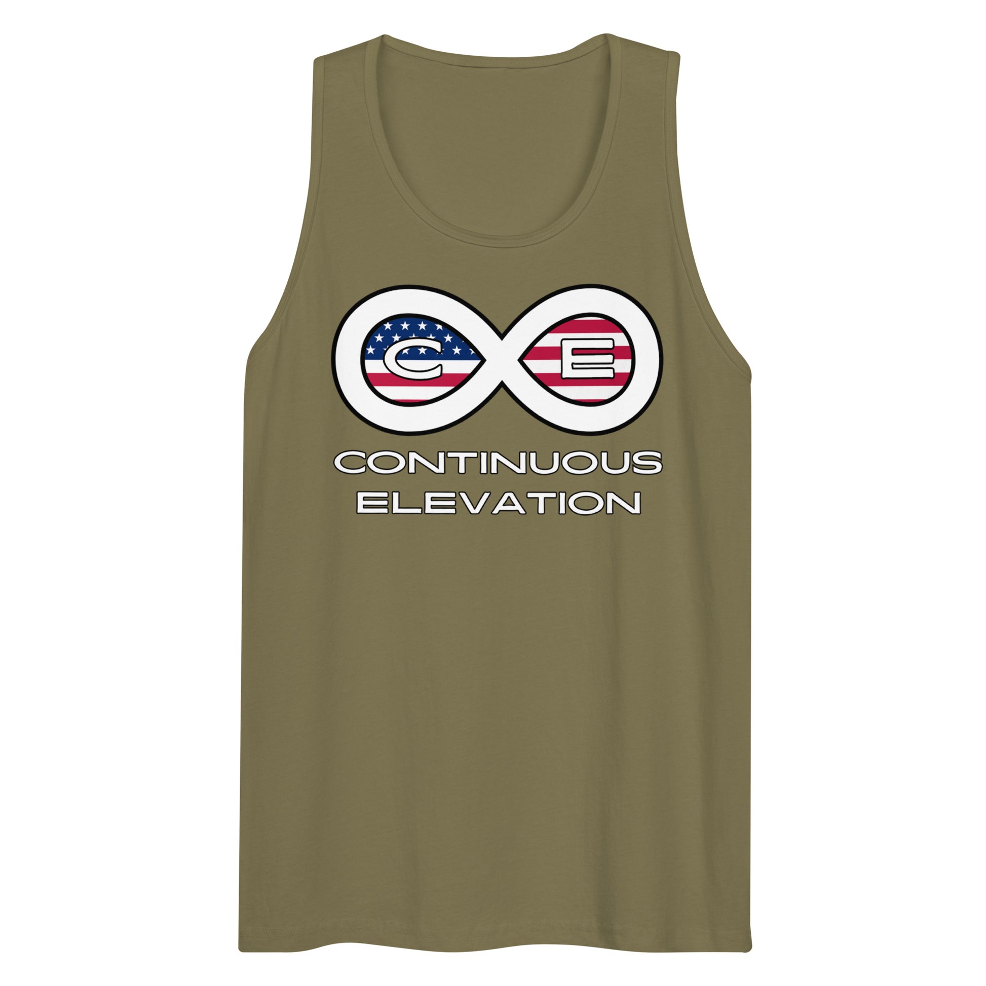 Wear your pride in the USA. This men's tank top features the signature Continuous Elevation logo with the United States flag backdrop on the front and back.