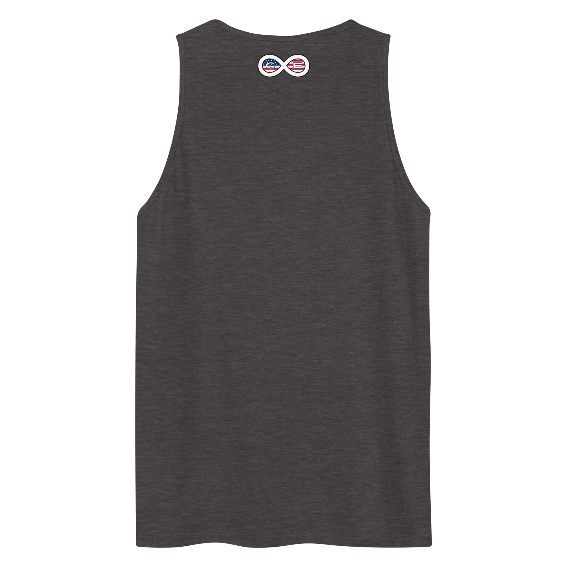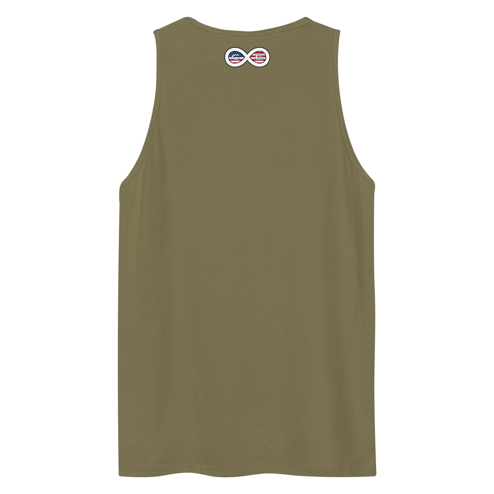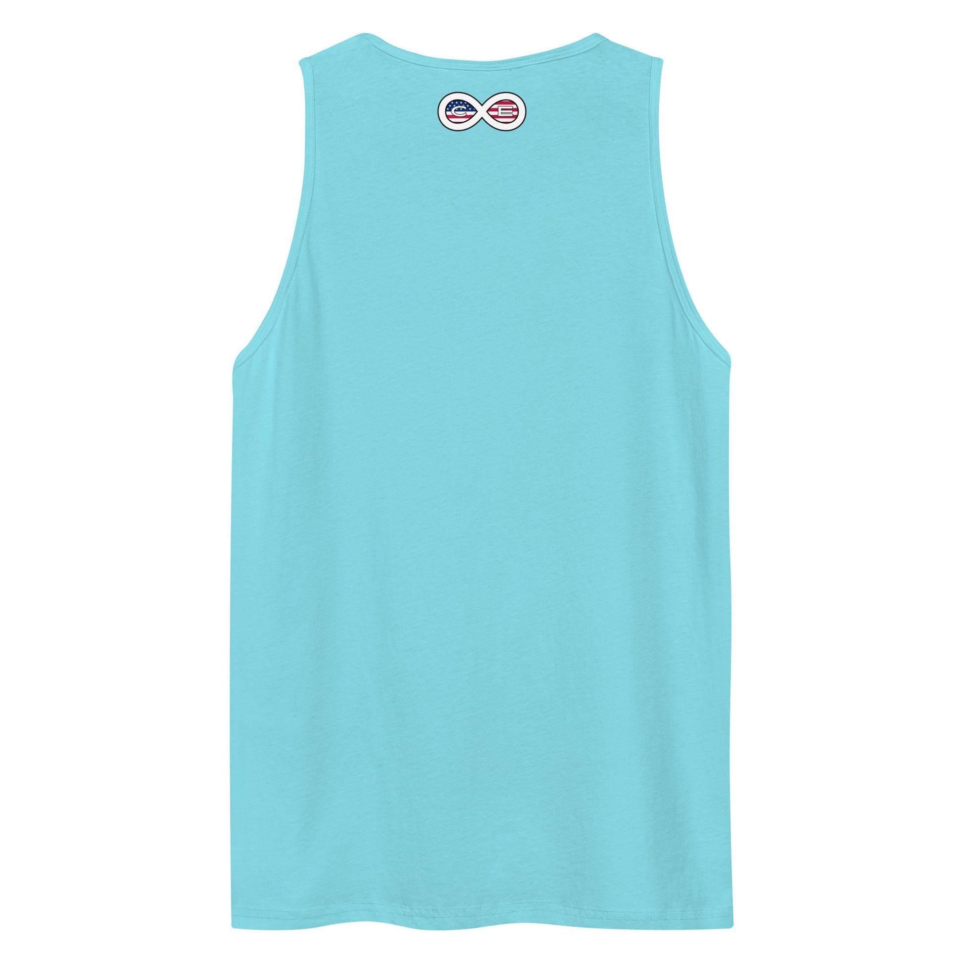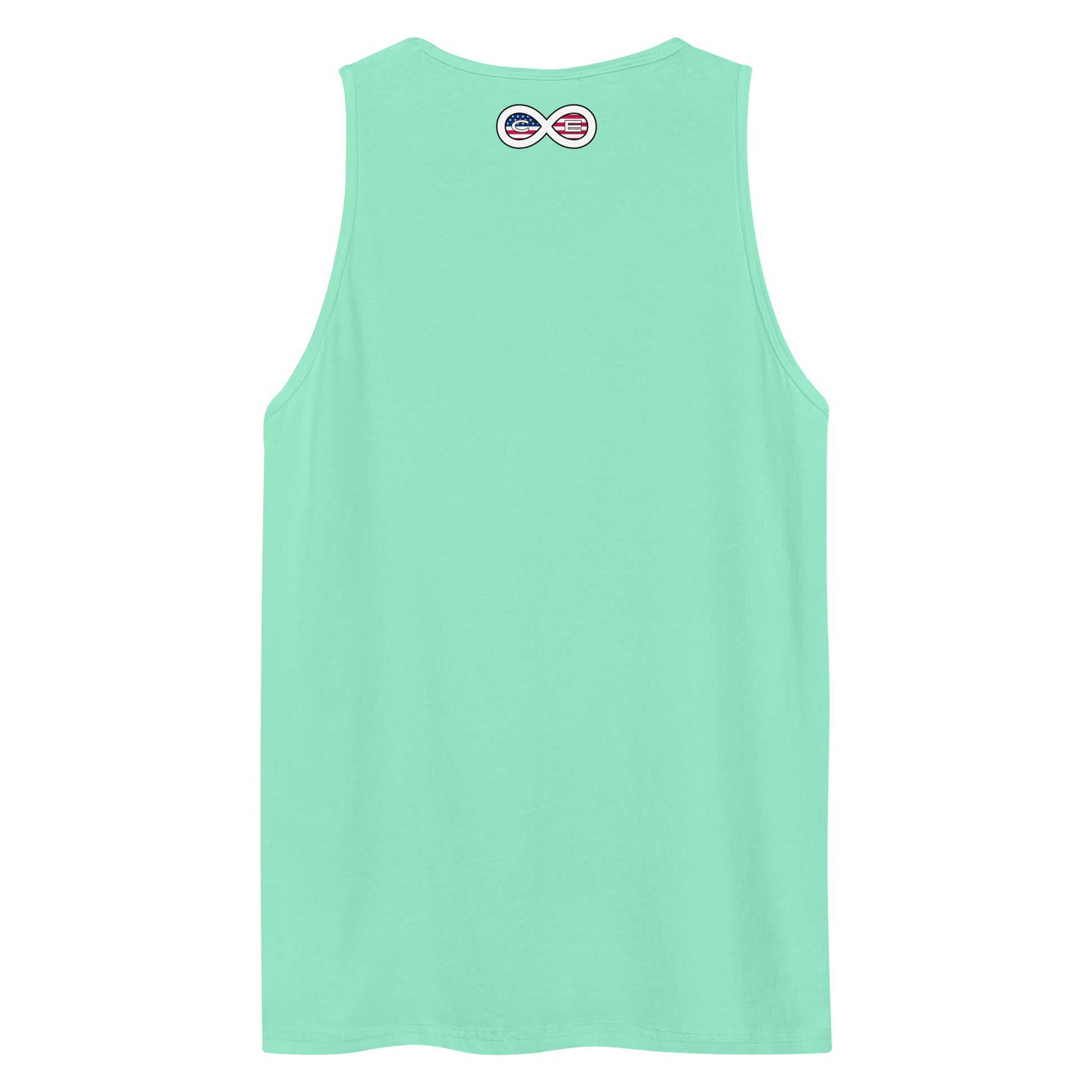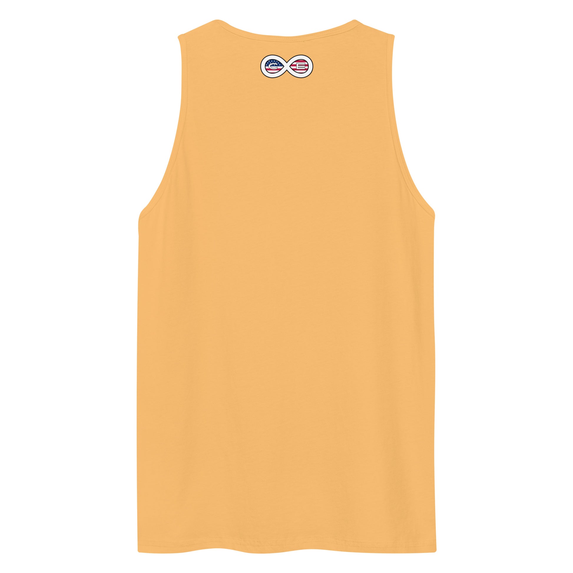 Wear your pride in the USA. This men's tank top features the signature Continuous Elevation logo with the United States flag backdrop on the front and back.